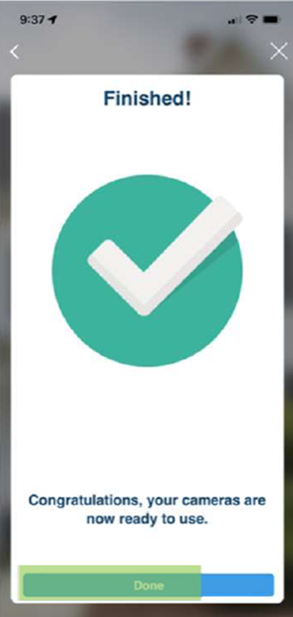 Confirmez la synchronisation des caméras et du Hub. Cela peut prendre quelques minutes.