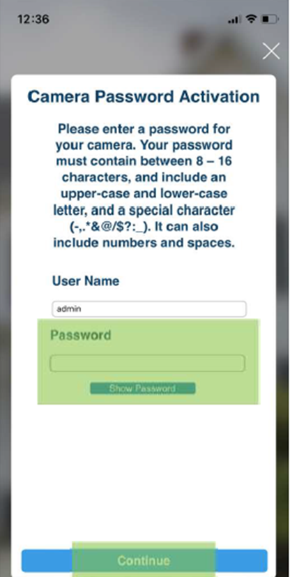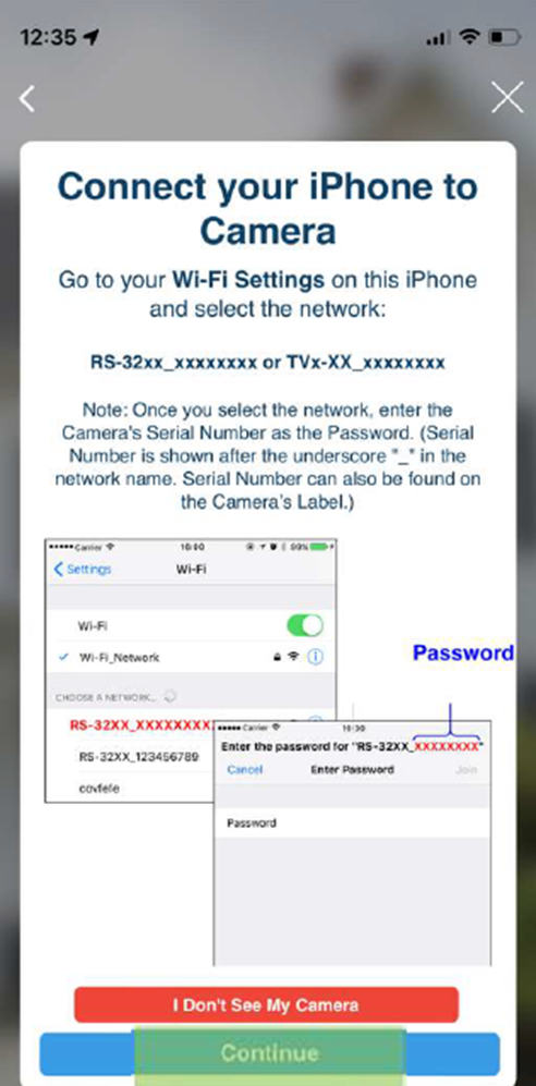 Indiquez les identifiants du réseau Wi-Fi auquel la caméra doit se connecter pour communiquer avec la centrale d’alarme, puis cliquez sur Continuer.