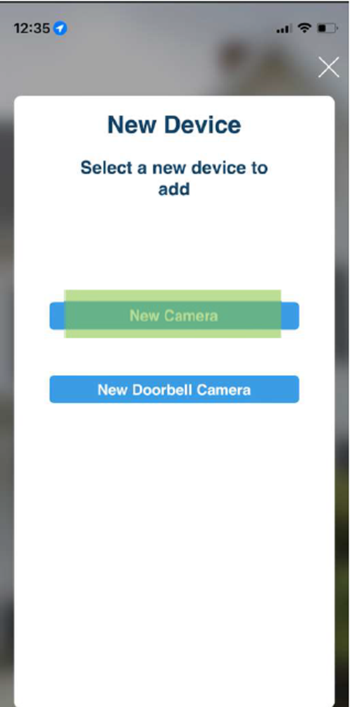 Choisissez ‘Nouvelle caméra’ dans la boîte de dialogue ‘Nouvel appareil’