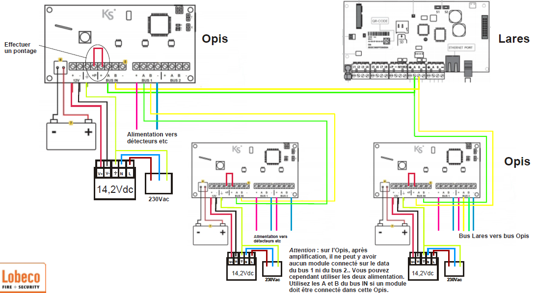 Connexion d'un contact d'alarme et de défaut à un MIO (Teletek) 1. Utiliser une entrée séparée pour l’alarme et le défaut 2. Utilisez la même entrée pour l’alarme et le défaut