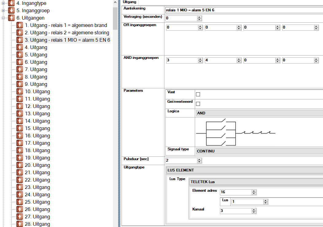 Bv: activeren van relais 1 (mio22) bij brandalarm op detector 5 EN detector 6